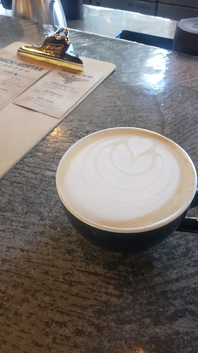 5 Stars: Excellent Service and a Wonderful, Laid-Back Vibe. Brick and Mortar Coffee is a fantastic spot! I was immediately impressed with the laid-back, rustic feeling of the space—it's bright, comfortable, and the perfect place to relax for a while. The service here is outstanding. The barista was friendly, helpful, and very welcoming. We ordered a Cuban Macchiato and the seasonal Sweater Weather Latte, and both were prepared quickly and tasted superb. They clearly take care in their craft. If you’re looking for high-quality, specialty coffee served with a genuine smile in a truly comfortable setting, this is the place. Highly recommend stopping by!"