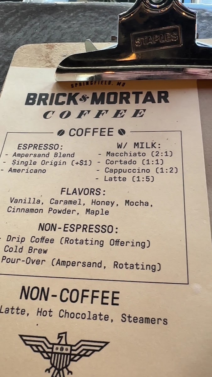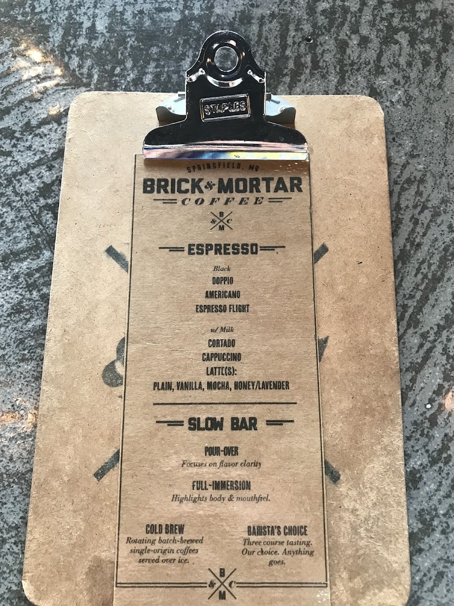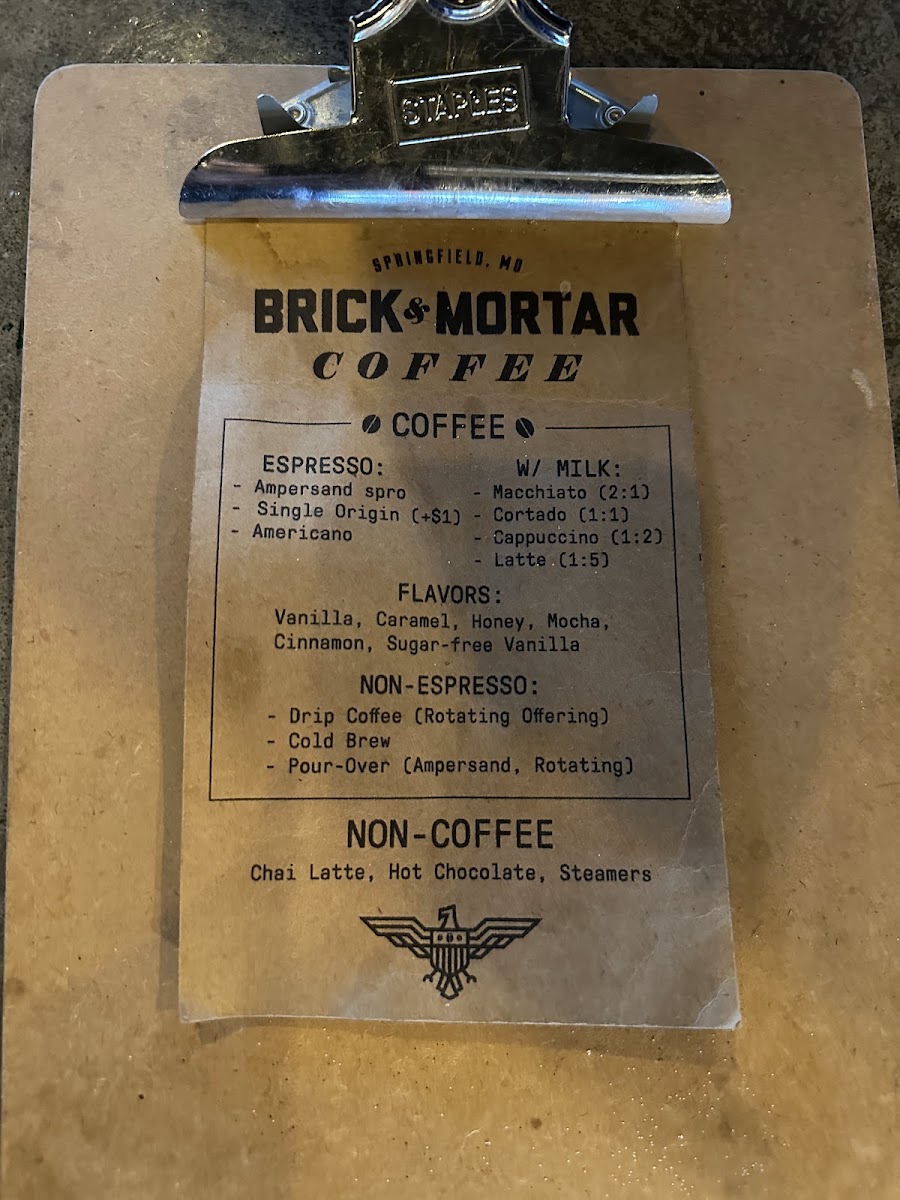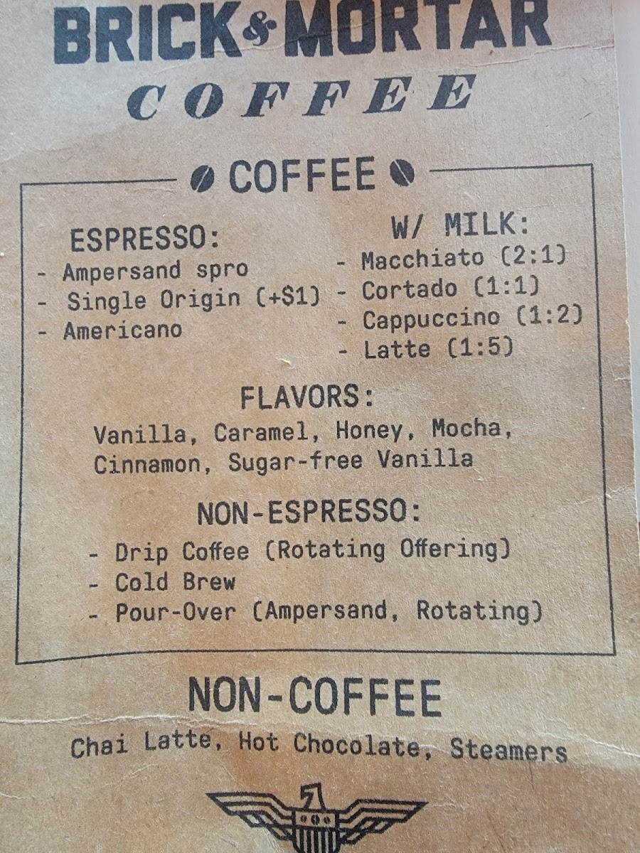 Brick & Mortar Coffee Menu